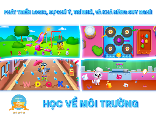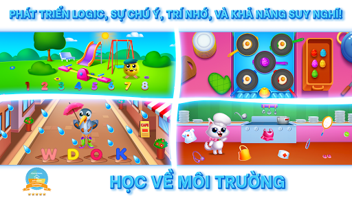 Trò chơi giáo dục tương tác này bao gồm 4 trò chơi theo chủ đề và 44 cấp độ vui nhộn: