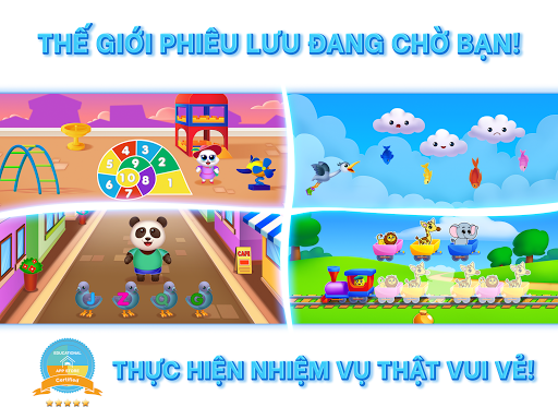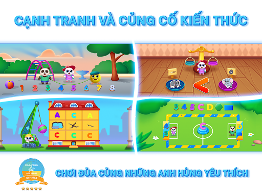 Các nhân vật ngộ nghĩnh sẽ giúp con bạn giải trí với các hiệu ứng âm thanh khác nhau, hình động vui nhộn và giúp bạn dễ dàng điều hướng trong trò chơi.