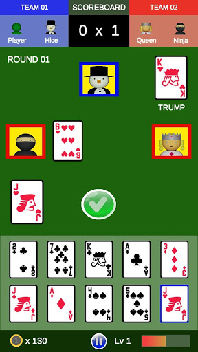 Trong một trận đấu có 10 vòng và tổng cộng 120 điểm và chỉ các thẻ sau có giá trị: tại (11pts), 7 (10pts), k (4pts), j (3pts) và Q (2pts).