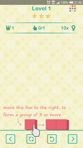 Nhóm 3 hoặc nhiều hộp cùng màu với nhau để làm cho chúng phát nổ. Phá hủy tất cả các hộp để hoàn thành một cấp độ. Sử dụng càng ít di chuyển càng tốt để có được điểm cao hơn.