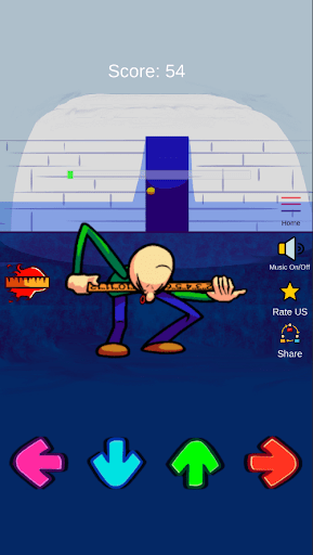 What to do in the game FNF Baldi Test? everything is simple! You need to score as many points as possible. To do this, click on the arrows on the screen of your device after you have started the game. After each click, the hero will sing a certain note and make a certain movement, and you will receive points. A result of 1500 points is considered a good result of the game. If you manage to score more than 2000 points, you are great at FNF Baldi Test.