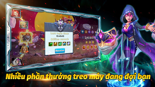 Treo máy 24 tiếng vẫn nhận được phần thưởng. Chỉ cần xây dựng đội hình chiến đấu và thu thập phần thưởng ngay khi bạn trở lại!