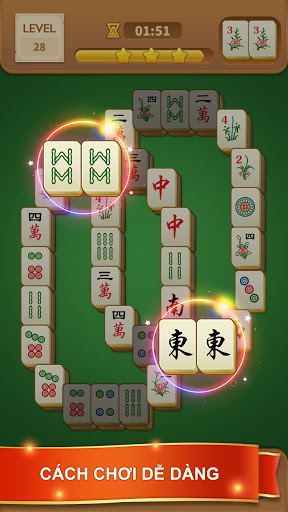 Mạt chược kết nối còn có tên tiếng Anh là Mahjong Solitaire được thiết kế với đồ họa tươi mới, hiệu ứng sống động và âm thanh vui nhộn sẽ khiến bạn chơi hoài không chán. Để bắt đầu chơi bạn chỉ cần nhấn vào nút play và bắt đầu chọn 2 con bài mạt chược giống nhau. Nếu chọn sai, game sẽ cho phép bạn chọn lại nhiều lần cho đến khi nào bạn chọn được đúng hai con bài giống nhau. Bạn đừng lo nếu bạn chưa biết chơi mạt chược, vì thực sự chỉ cần nhanh mắt là có thể tìm ra hai con bài giống nhau khá nhanh chóng thôi. Thế còn nếu tìm hoài vẫn không tìm ra được cặp đôi thì sao? Hoàn toàn không sao, game mạt chượt ghép đôi sẽ gợi ý cho bạn bằng cách nhấp nháy cặp đôi hiện có. Vậy nên bạn sẽ không lo chơi bị bí đâu nhé.