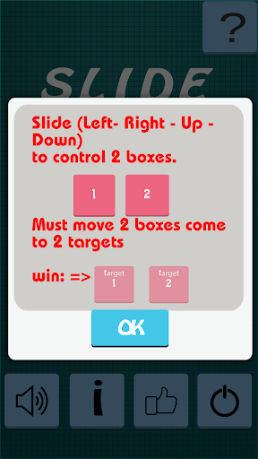 Lối chơi đơn giản, bạn sẽ di chuyển hai hộp bằng cách vuốt (lên, xuống, trái, phải) trên màn hình, và di chuyển 2 hộp đó tới vị trí .