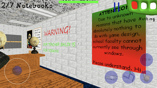Just imagine a one day without scary baldi is sick teaching math and suddenly we must take care of baldi because baldi is sick sleepy and tired working all day all night just how annoying that part is. As usual, baldi remastered remake game is scary as hell and not such education or anything related to learning, it's fully mystery learning parodies 3d experience that doesn't including educataion in it just for fun. If you want to help baldi is sick remastered mod to get his rest, just collect 7 notebooks you can get in each school class room answer math question correctly with good answer of course. After collecting all 9 notebooks (7 notebooks 2 special notebooks which will trigger special ending for you) please give it to baldi desk in teacher office so that baldi is sick mod can relax and rest sleepy tired in home only for today baldi will not be mad and angry punishing students.