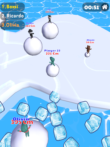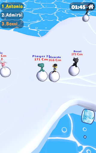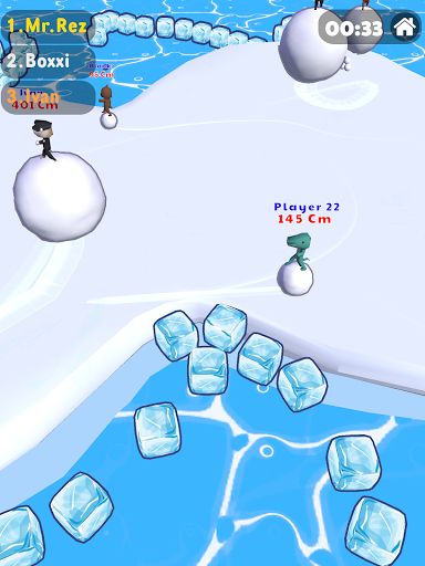 Cạnh tranh với đối thủ, cuộn quả cầu tuyết của bạn trên tảng băng trôi càng nhiều càng tốt để làm cho nó lớn hơn và nhanh hơn những người chơi khác!Đánh vào đối thủ của bạn và trượt chúng ra khỏi Ice Berg để làm cho chúng nhỏ hơn, hãy cẩn thận rằng bản thân bạn không bị trượt!