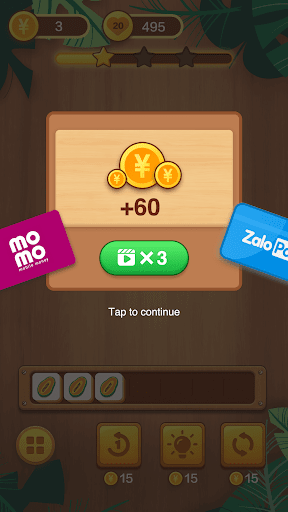 - Ghép ba phần tử giống nhau vào ô để loại bỏ, và loại bỏ tất cả chúng được coi là vượt qua.