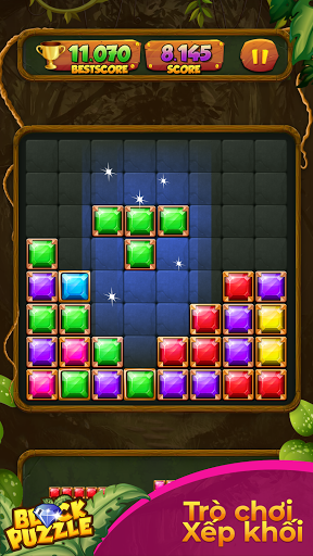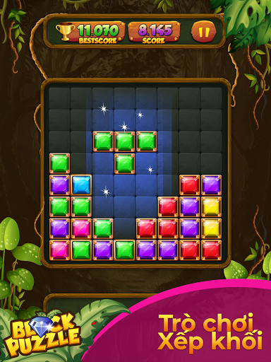 Trò chơi Block Puzzle - xếp hình kim cương với bối cảnh săn kim cương trong rừng rậm, bạn hãy xếp những khối kim cương trên màn hình sao cho càng ăn được nhiều điểm càng tốt nhé.
