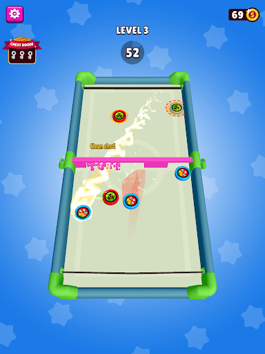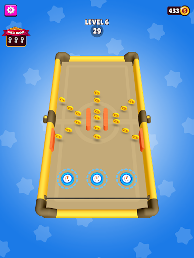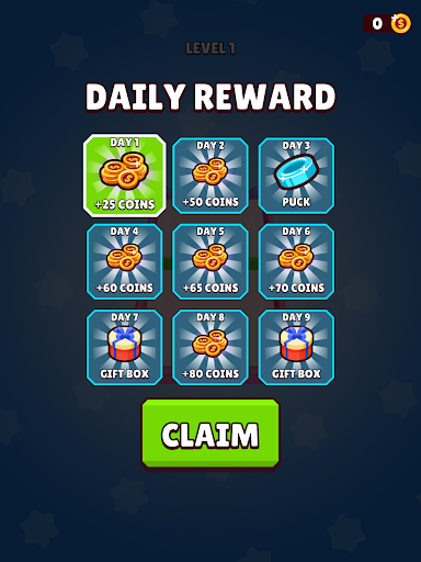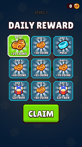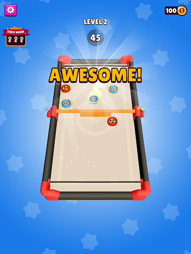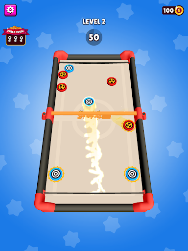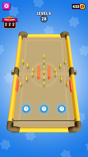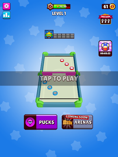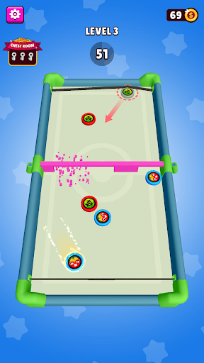 Hold and drag blue pucks to the rubber sling and shoot them onto the other side of the arena before the Rival will shoot his red pucks to your side of the arena!