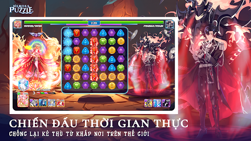 Heroes & Puzzles: Match-3 RPG mang lại trải nghiệm siêu đỉnh với đồ hoạ được nâng cấp cực mượt, lối chơi xếp hình kim cương quen thuộc với bao thế hệ người VIệt. Hệ thống nâng cấp phong phú, ẩn chưa sau những viên kim cương là sức mạnh nguyên thuỷ với các hệ khác nhau tuỳ vào màu sắc của từng viên: Kim Cương Đỏ và Vàng cường hoá đòn tấn công, viên Xanh Dương và Lục cường hoá thể lực và năng lượng,v.v... Trở thành vị cứu tinh của toàn cõi, bạn phải làm chủ sức mạnh của các viên đá quý, kết hợp chúng thành bộ 3 viên để giải phóng sức mạnh độc nhất, đẩy lùi bóng đêm và đem ánh sáng tới cho nhân loại.