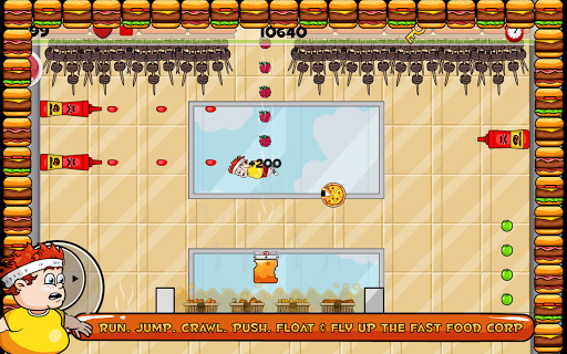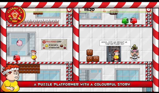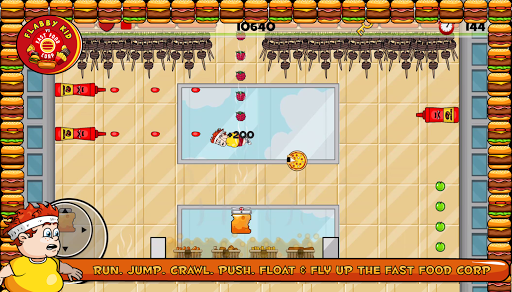 As Flabby Kid you must navigate your way up the Fast Food Corporation's head quarters, on a mission to end it's grip on the world's food supply.