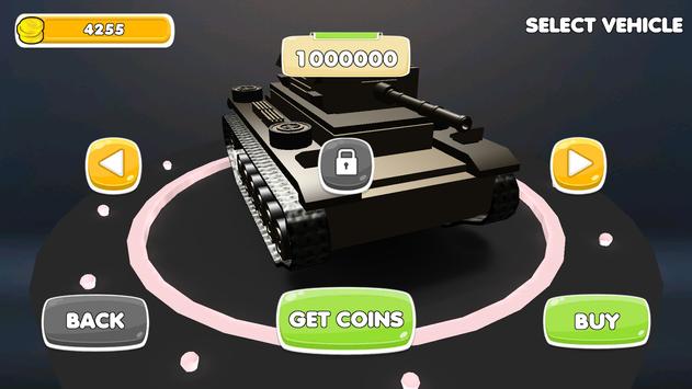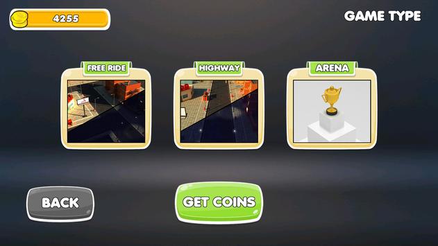 Arena: Where different cars compete to win a trophy. The last one which survives, lifts the trophy and wins coins to unlock new vehicles