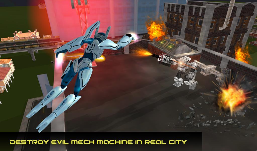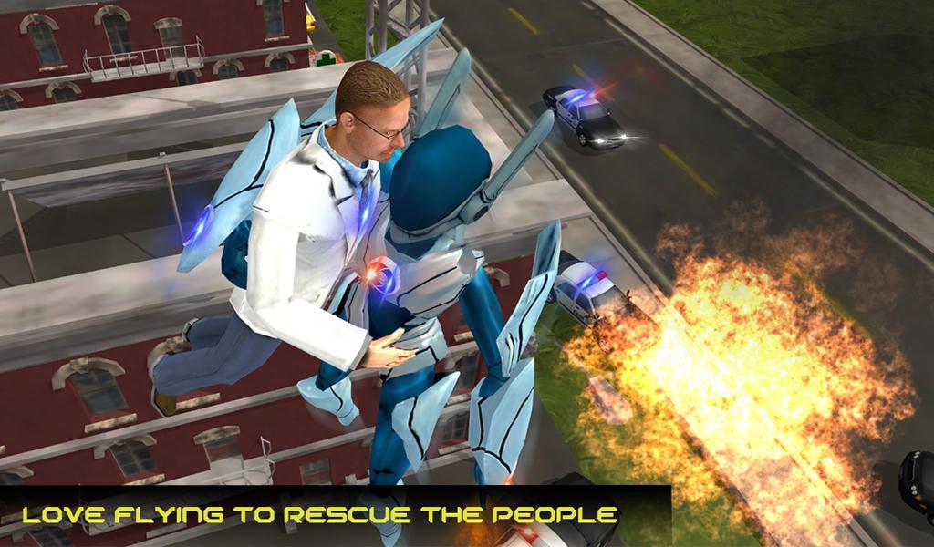If you like playing robot fighter police game or mech machine action games, you would love flying robot cop game. So, get ready for realistic robotic action, follow the mini map and progress in futuristic police robo game simulator. Reach the final Armageddon with evil robot and beat him to dust playing our flying robot simulation. Prove your futuristic fighting skills as a superhero robot to destroy all evil mech machine and mobsters in this cop game. Hurry up! This flying robot simulator is extreme fun and indulge you in adventurous game play.