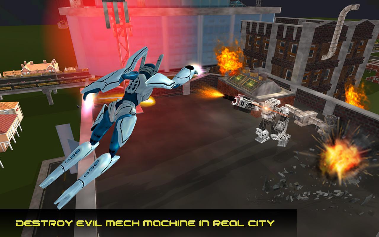 Super Hero Police Robot Simulator is the finest addition to futuristic robot game. Love playing police robo game? Then this futuristic robot police simulator is meant for you. Flying robot game is designed to play as police robot to fight with rival mafia & evil robot. Superhero robot is engineered for demolishing evil, mafia members through its supernatural powers and cruise attacks. Experience our futuristic robot police simulator, fight against mafia criminals and evil mech machine in real city. Your job is not so easy, follow instructions and rules to complete missions. You can fly across big city to kick & punch the mafia members. Futuristic police robo can fire a power ball on the target which cruises to destroy the opponent machine. Rescue the hostages from the grasp of deadly gangsters who are spreading chaos in peaceful city.