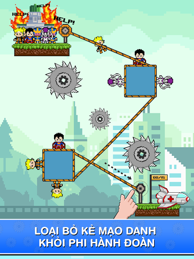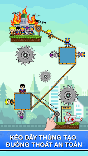 Giải cứu các siêu anh hùng giữa 2 đầu sợi dây và vượt qua các chướng ngại vật nguy hiểm.