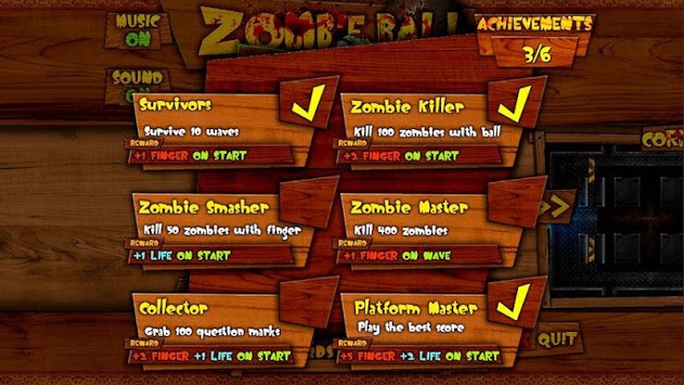 - Gain 6 different achievements that will increase your initial game stats (number of lives, finger bonuses)