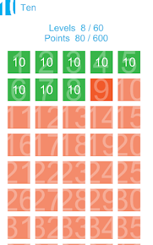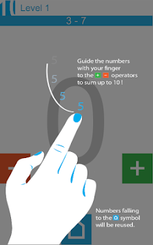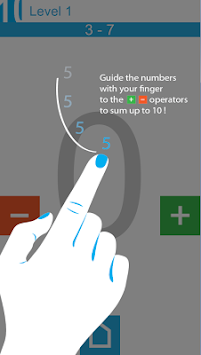 Ten is a mix of a brain game and a casual skill game. How hard can it be to sum up a set of given numbers to ten? Quite a bit! Use your fingers to guide the falling numbers to the ' ' and '-' operators to finally reach a sum of ten with the exact amount of instructed numbers if possible. Never go under zero or over ten or you loose. Be aware of the moving operators and finally it get's really difficult as soon the home-square starts moving as well...