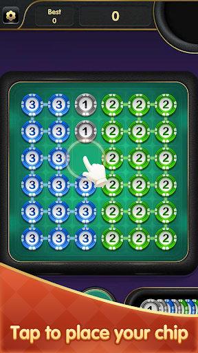 Kết hợp các chip tương tự trong "bậc thầy chip" và tận hưởng tập thể dục đào tạo não.Kết hợp 3 chip cùng màu và số lượng và tận hưởng giờ vui vẻ.