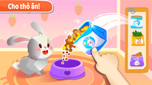Chữa trị hoàn tất! Thú cưng đói rồi. Đổ thức ăn cho mèo và để mèo con có một bữa ăn thịnh soạn. Cún con thích ăn xương. Đổ đầy thức ăn yêu thích của cún vào bát! Mặc quần áo cho thú cưng với mũ đội đầu có nơ và dây có chuông sẽ khiến thú cưng vui vẻ hơn!