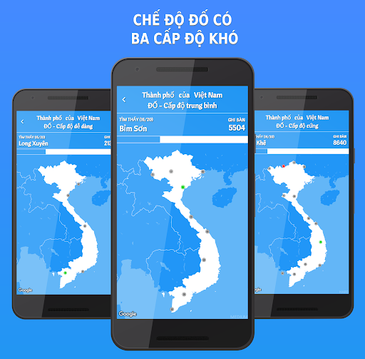 ĐỐ: Mục tiêu là đoán nơi một thành phố hoặc thị trấn trên bản đồ. Bạn có một số tùy chọn để chọn và chỉ một là đúng. Mỗi cấp độ có một số lượng khác nhau các câu trả lời có thể. Câu trả lời nhanh (và chính xác) sẽ được quảng bá bởi các điểm bổ sung.