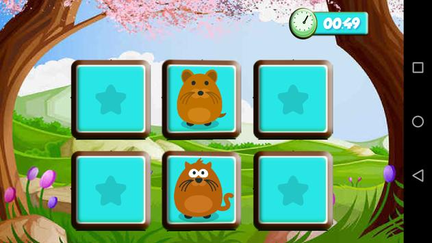 In every level, player is required to tap the square buttons and need to memorize what is behind it in order to match its couple. Players are required to complete a level in minimum finger taps to match all animals.