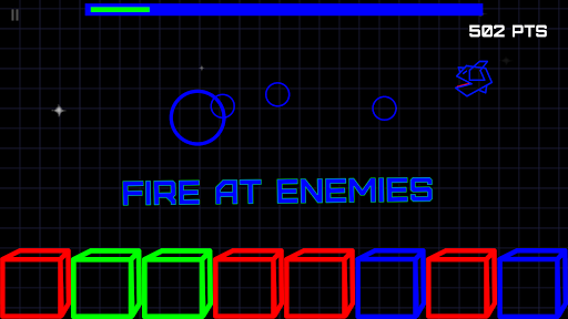 You start with just a simple green circle, but as you progress, you'll find it changing colors, and enemies flying across the screen.
