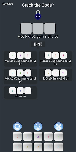 Crack The Code Pro là trò chơi giải đố không có hồi kết. Bạn sẽ được thử thách để tìm ra 2 đến 5 con số với một số lượng các câu gợi ý giới hạn. Bạn có thể giải mã các con số nhanh hơn bạn bè của mình không?