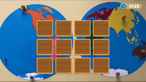 Bạn nhấp vào một thẻ và cố gắng tìm cặp.Br> khớp với các lục địa - với hình ảnh thực của các vật liệu Montessori.