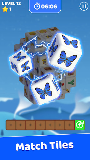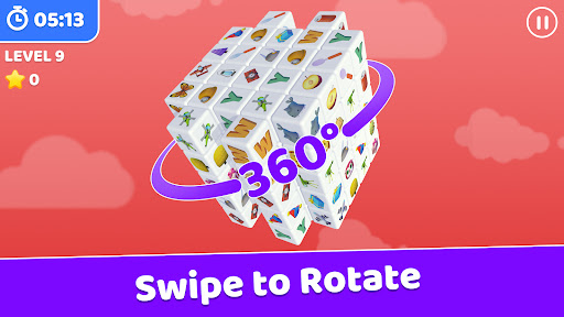Vuốt để xoay bảng câu đố khối lập phương 3d để tìm nhiều cặp gạch phù hợp hơn.