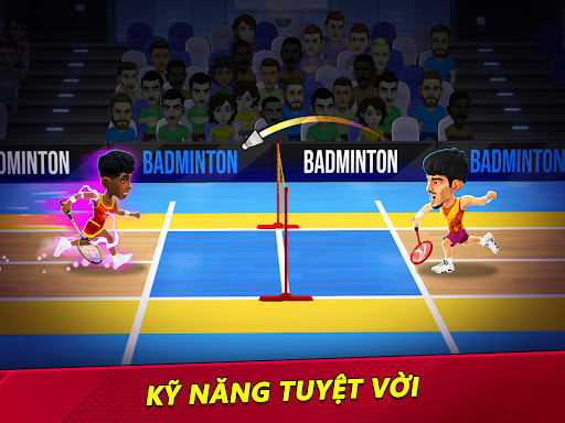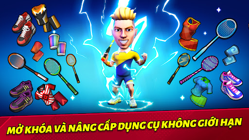 "Đập cầu và ghi điểm ở mọi tình huống! Nâng cấp kỹ năng như Super Smash để đập cầu và ghi điểm trong mọi cơ hội bạn có!