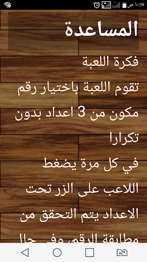 تقوم اللعبة باختيار رقم مكون من 3 اعداد بدون تكرارا