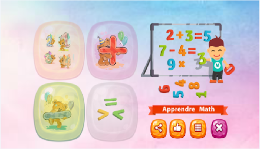 l'application jeux de maths permet aux enfants d'apprendre facilement les opérations de l'addition, la soustraction et de la comparaison des chiffres tout en amusant! Fonctionne parfaitement pour les enfants de 4 ans et plus. Après avoir joué à ce jeu de mathématiques gratuit, vos enfants vont certainement calculer plus rapidement.