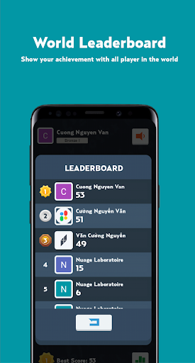 ✔ Lưu thành tích của người chơi theo tổng điểm tích lũy được, cùng so tài với bạn bè trên toàn thế giới.