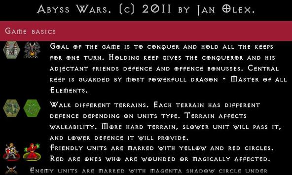 Abyss Wars is multiplayer strategy (tactical to be precise) fantasy war game. You control small army of selected race heroes to conquer the land and fight forces of abyss. You will need all your tactical skills to be victorious. Use magic, meelee and ranged attacks. Use combined forces of different units. Conquer tactical positions on the map, grow your army, defeat one of the best AI you will encounter in such a games.
