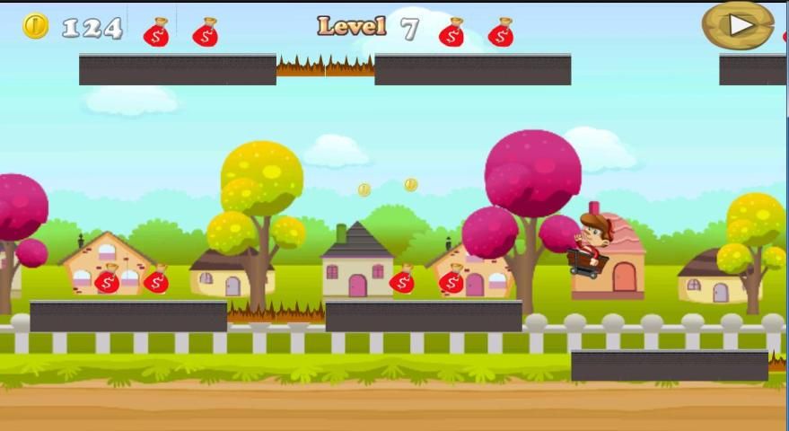 Tap screen or trackball to jump to avoid obstacles in your world adventure!